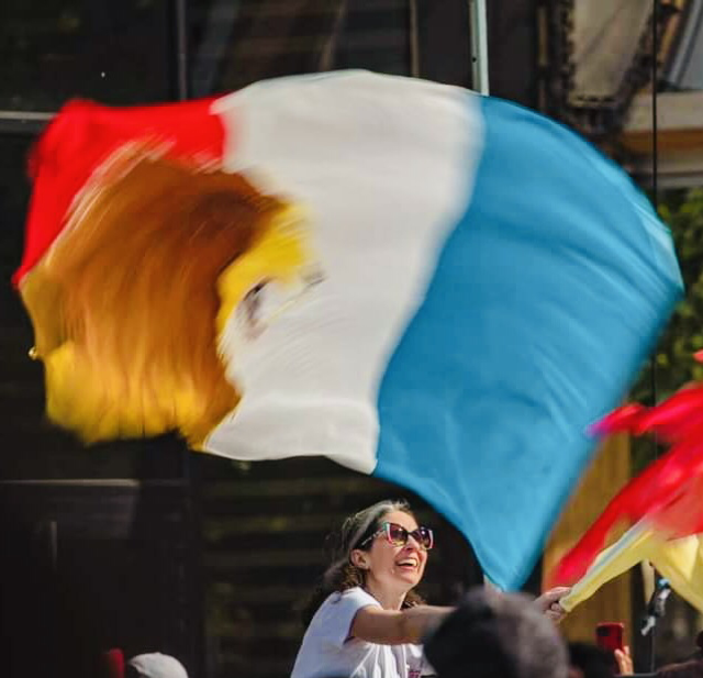 Bannière en soie épaisse, peinte à la main, ointe d’huile de Jérusalem. Drapeau de proclamation reçu lors d’une vision pour la France. Le Lion Rugissant évoque la levée d’intercesseurs puissants et d’évangélistes zélés pour la Francophonie.