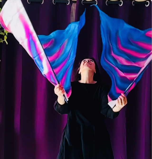 Bannière en 100% soie légère ou semi-légère (un peu plus épaisse) peinte à la main, ointe d’huile de Jérusalem. D’une fluidité exemplaire, elle voltige dans l’air et capte la grâce du Saint-Esprit. Tiges souples fournies pour les paires seulement. Pour annoncer les Miracles .. « ne t’ai-je pas dit que si tu crois… »