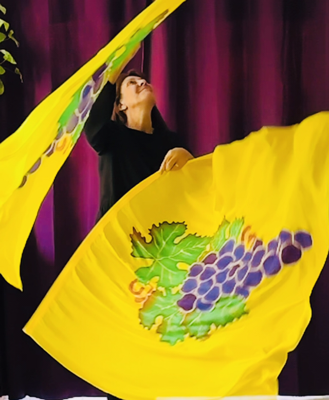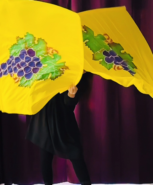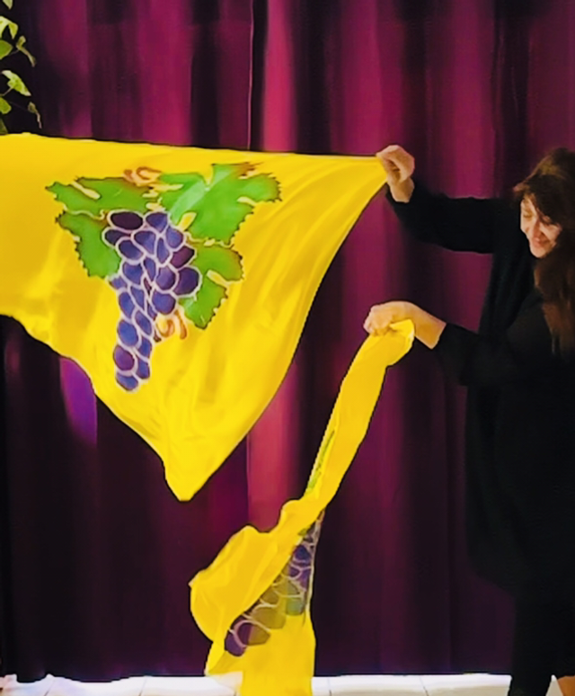 Bannière en 100% soie semi-légère, peinte à la main, ointe d’huile de Jérusalem. D’une fluidité exemplaire, elle voltige dans l’air et capte la grâce du Saint-Esprit. Tiges souples fournies pour les paires seulement. Pour expérimenter l’ivresse du Saint-Esprit..