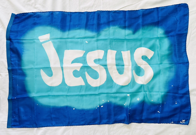 Bannière en 100% soie légère ou semi-légère (un peu plus épaisse) peinte à la main, ointe d’huile de Jérusalem. D’une fluidité exemplaire, elle voltige dans l’air et capte la grâce du Saint-Esprit. Tiges souples fournies pour les paires seulement. Nous rappelle qu’il n’y a qu’un seul Nom par lequel nous puissions être sauvés…
